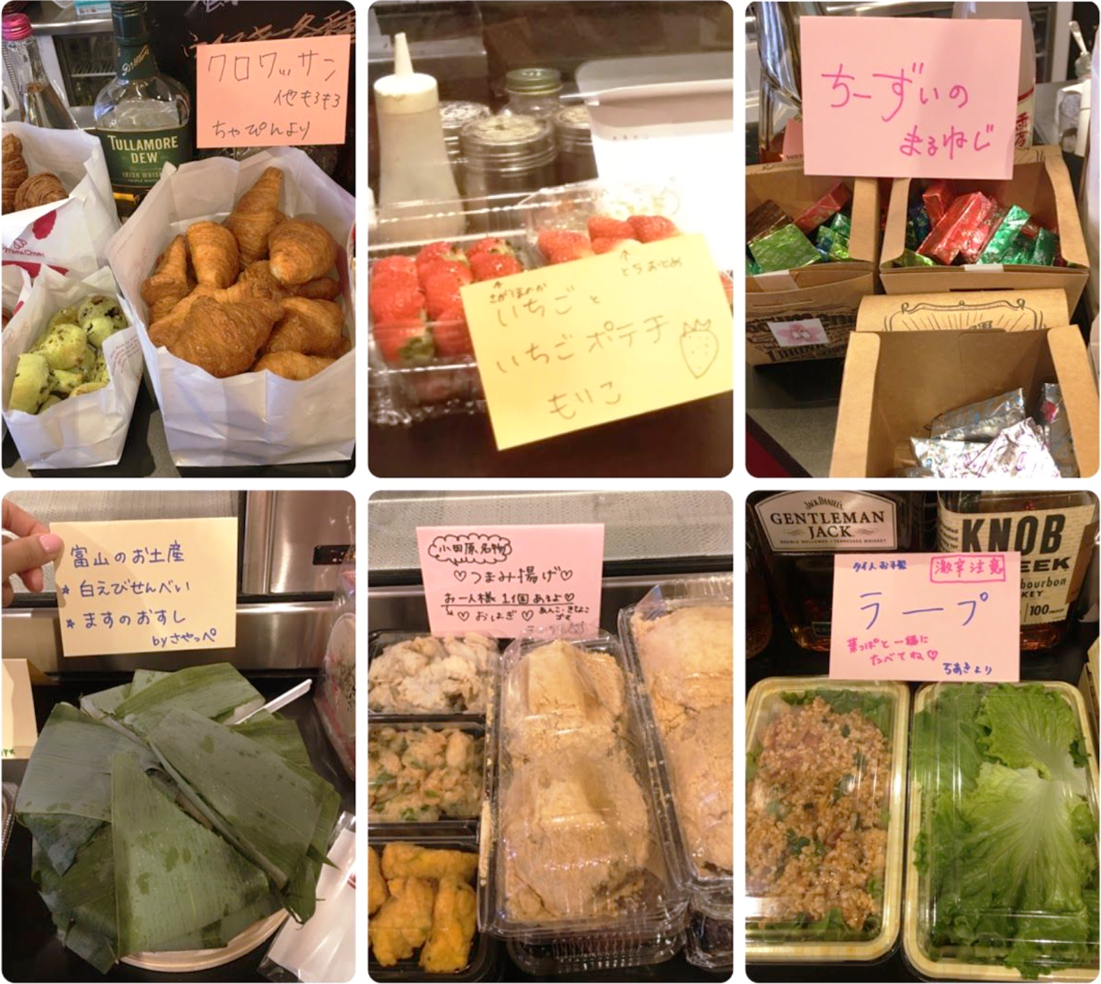 さてさて、11時45分ぐらいからでしょうか。少し肌寒い曇り空の下、12時の集合に合わせてみんなが集まってきました!毎日のようにサロンページでお話ししてるみんなですが、直接会うのは久しぶりだったり初対面だったり♪きゃっきゃきゃっきゃしながら、持ち寄りのお惣菜やスウィーツをカウンターに並べていきます~。バイキング形式で~す。