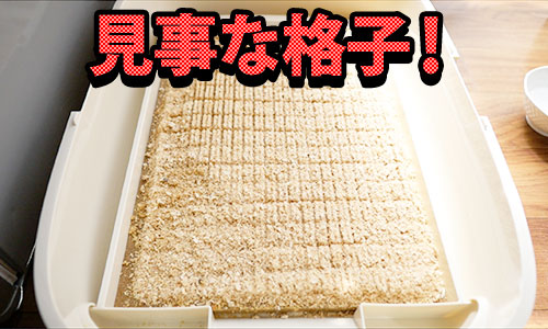 (たぶん一度入れる数量が少ないのかも。全体的に2〜3センチ積もるくらいの量で入れてます)
