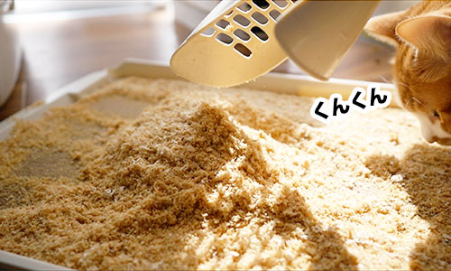 なので上には形の残った猫砂が残って「おがくず」が下に溜まっていく。