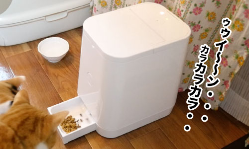 はじめは自動で餌が出てくる音にびっくりしていたようですが、今では時間になると行儀よく餌を待っています♪