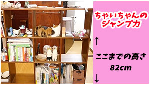三段ありますが、一番高いところで82cm。もちろん自分で飛び乗ってます。