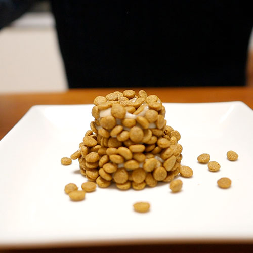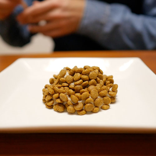 潰れないようにカリカリを敷き詰める作戦だったのに〜。